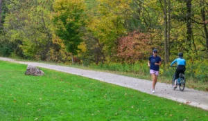 It is also important to know that cycling is not permitted on the Bruce Trail. If you see white or blue blazes marking the trail, that is your signal to walk, not ride. Please respect this rule to protect both the trail and the visitor experience.